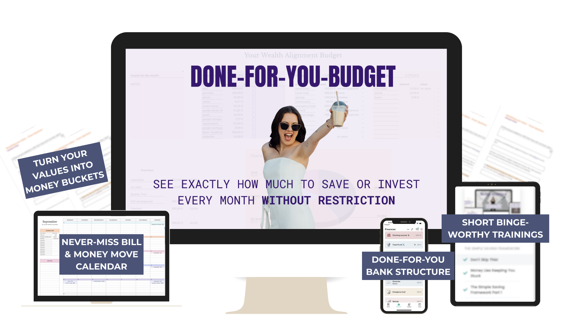 The Done-For-You Budget that shows you exactly how much to save or invest this month in under 30 minutes WITHOUT obsessively tracking your spending